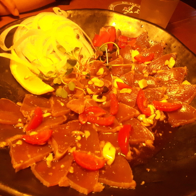 간단하게 술을 곁들여서 식사를 하고 우리는 2차로 근처 이자카야로 향했다. 시원한 생맥주와 함께 먹는 참치 다다끼